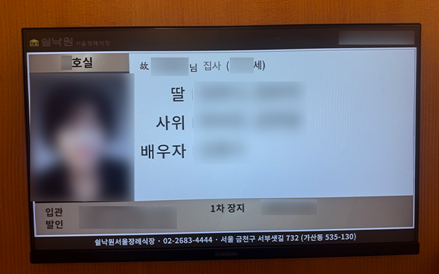 둘째 날에는 쉴낙원서울장례식장 내 입관실에서